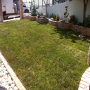 Giardino di circa 500 mq. E' stato realizzato un apporto di terreno e livellamento. Messa a punto impianto di irrigazione. Stesura prato a rotoli.